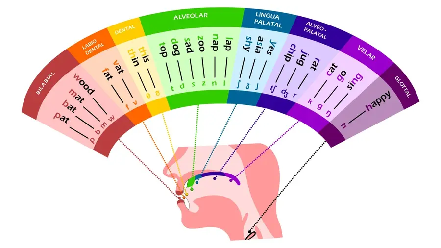 - Em consoantes sonoras, a vibração é o único som produzido. Em surdas, nenhum som é produzido até que o ar seja expelido “explodindo” para a pronúncia de uma vogal.